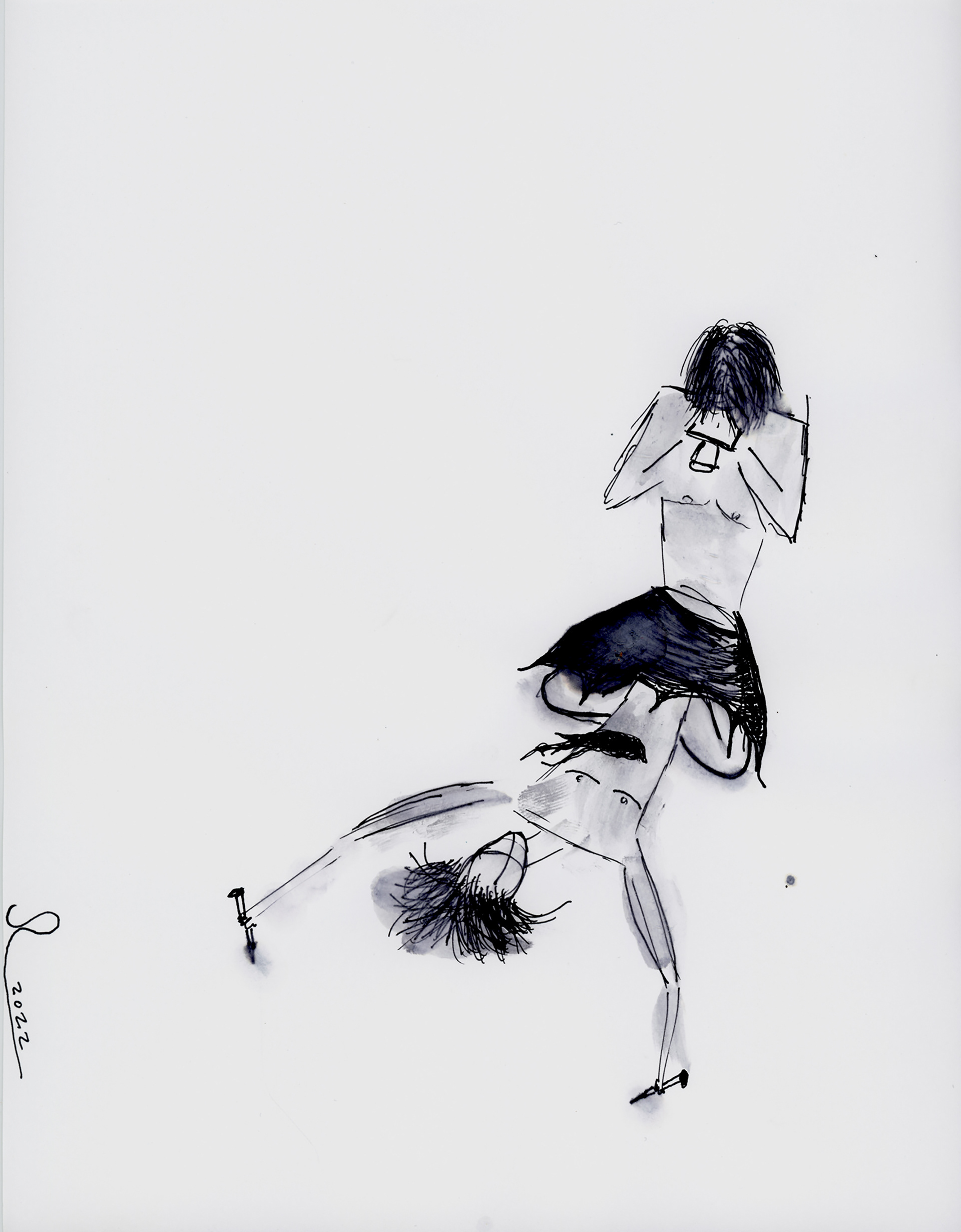Harvey Milk For The Arts & Photo Center - Annual Art + Pride Exhibition: UNAPOLOGETICALLY QUEER - Double Self Portrait (2022) graphite, ink, saliva on paper 21.59cm x 60.8cm. 01/01. signed/dated. - San Francisco, CA - 2025